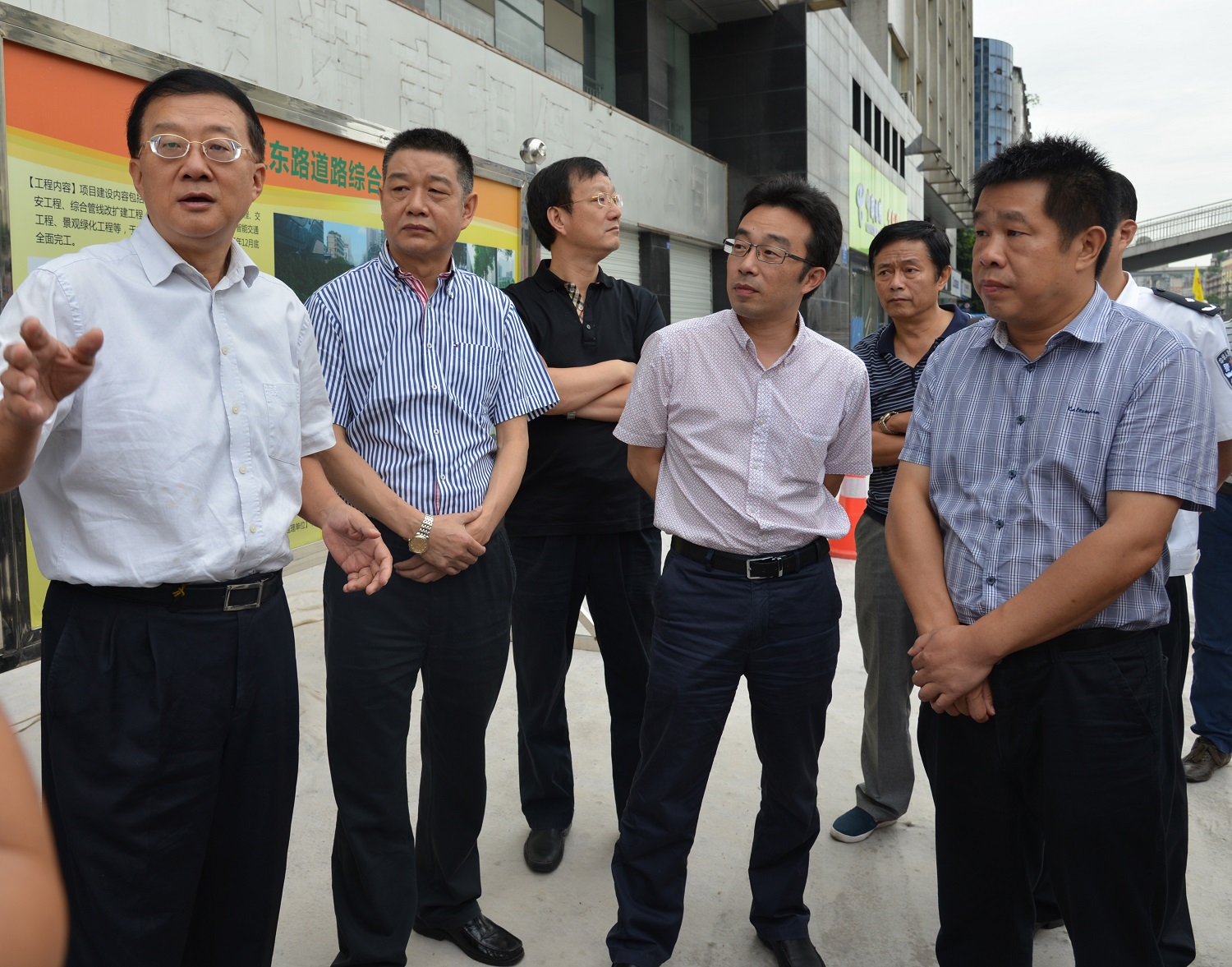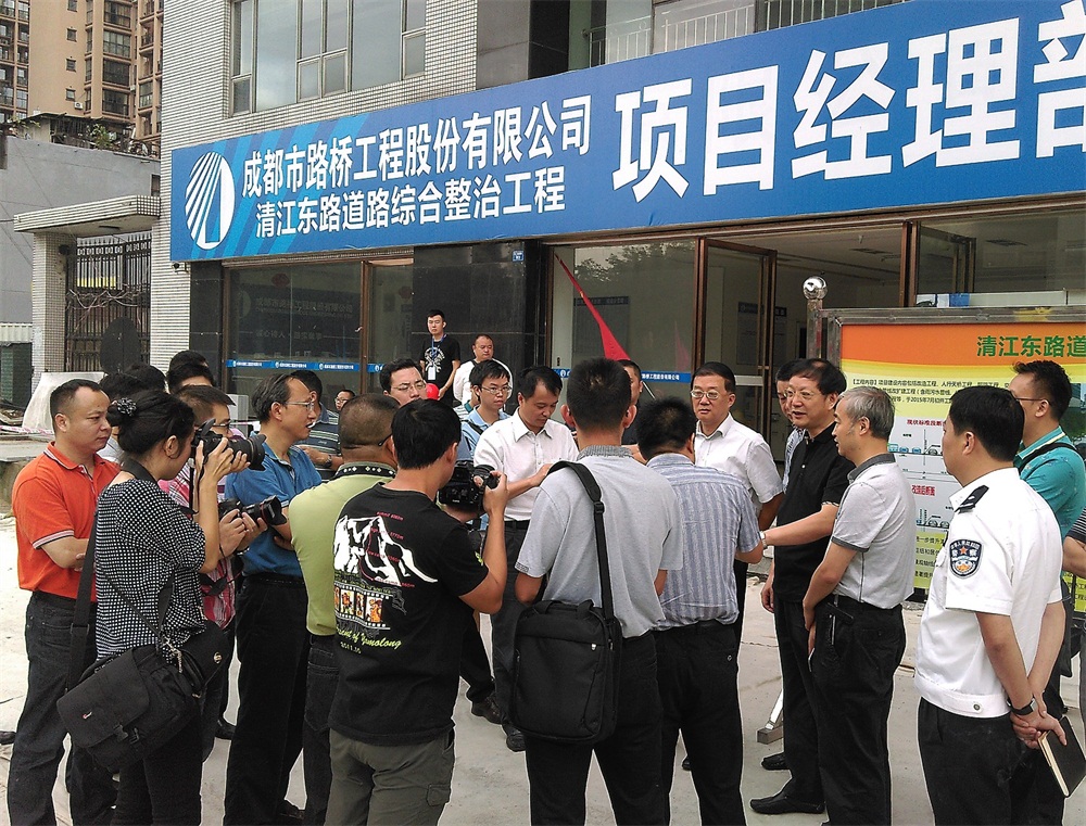 2015年8月20日,成都市人民政府資政黃平率安監(jiān)站、質(zhì)監(jiān)站負(fù)責(zé)人、青羊區(qū)區(qū)長(zhǎng)及成都市各相關(guān)部門負(fù)責(zé)人等到公司清江東路道路綜合整治工程視察,公司董事長(zhǎng)周維剛、董事兼常務(wù)副總經(jīng)理王繼偉、董事王建勇等陪同視察。