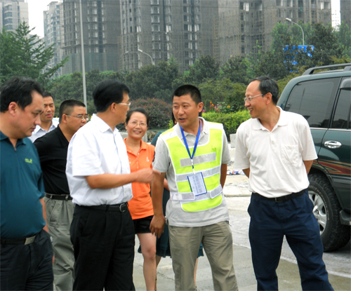 市政協(xié)副主席、市建委主任黃平與項(xiàng)目負(fù)責(zé)人親切交談,了解工程進(jìn)展
