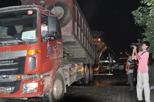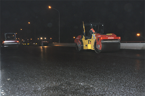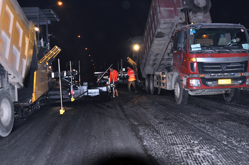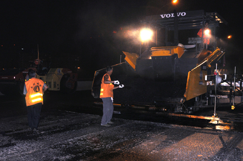 夜間攤鋪施工